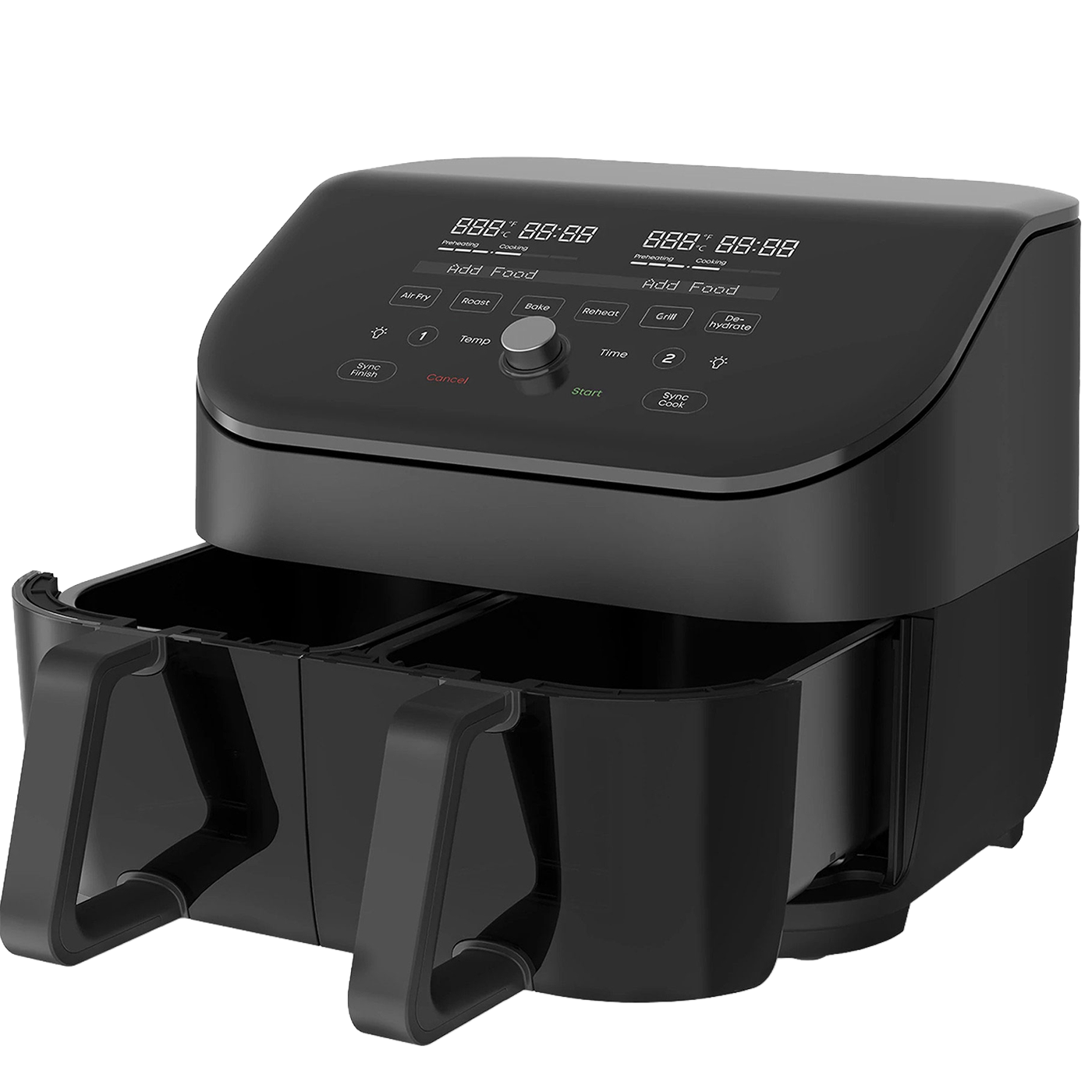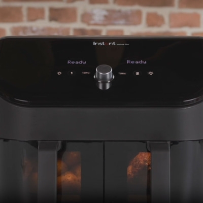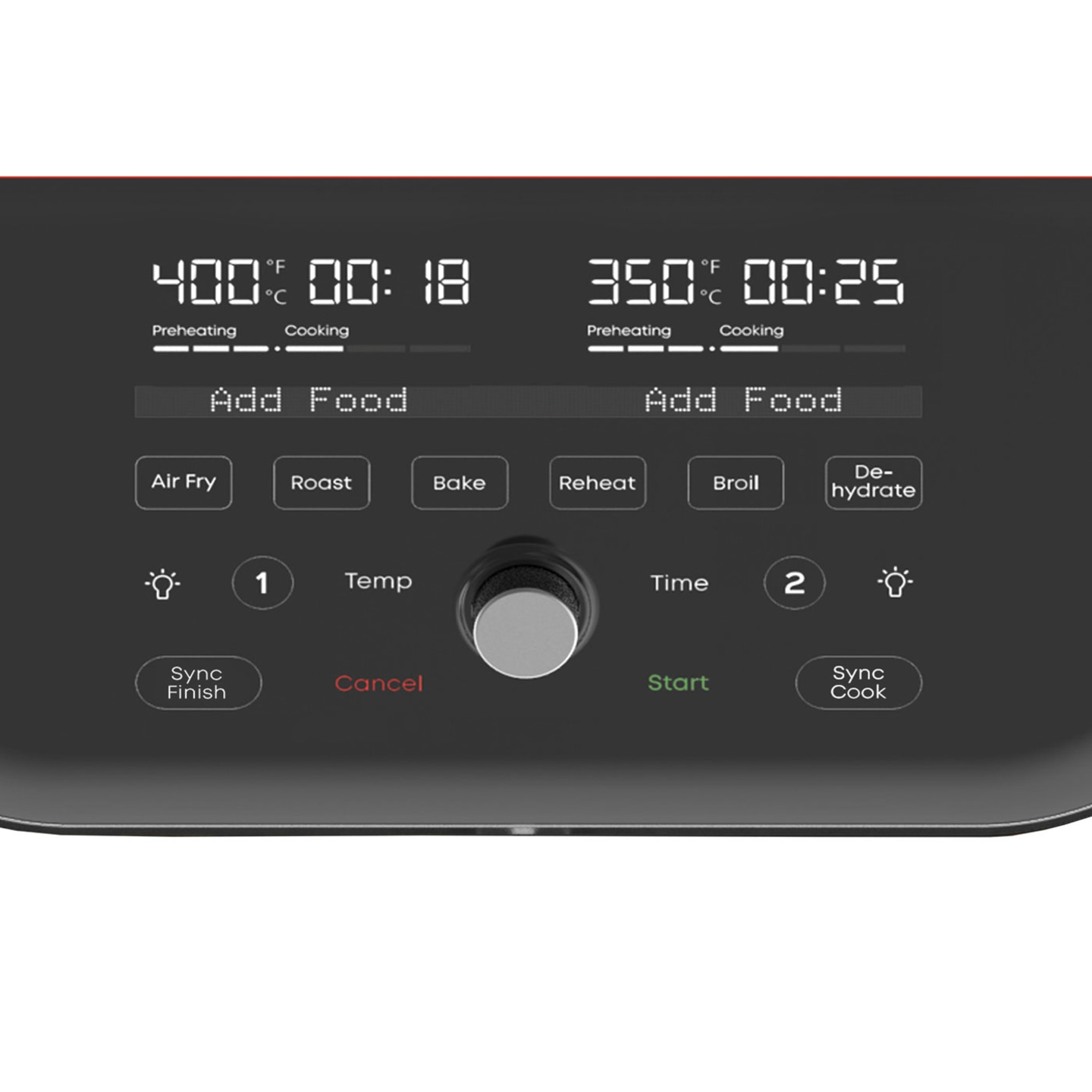Erleben Sie die nächste Stufe des Airfryens mit dem Instant Vortex Plus Dual ClearCook. Die doppelten Heißluftfritteusenkörbe ermöglichen es, zwei Gerichte gleichzeitig zuzubereiten – mit separaten Bedienelementen für jede Zone. Während in einem Korb die Hauptspeise gart, können Sie in der anderen Beilagen zubereiten, ohne Aromen zu vermischen.