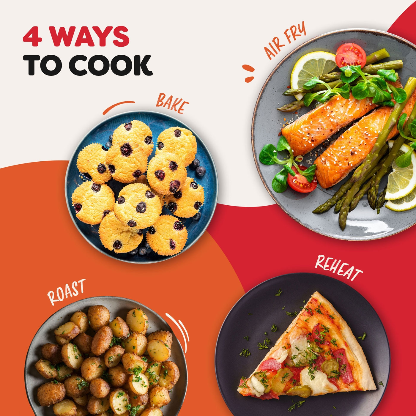 - 4-in-1 Funktion: AirFryen, Rösten, Backen, Aufwärmen