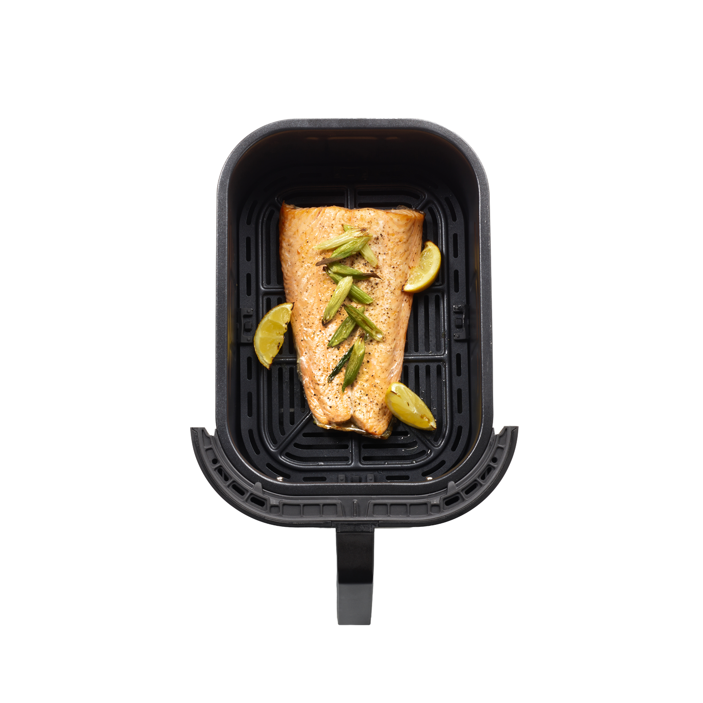 - Erweiterter Korb – Für längere Lebensmittel wie Lachsfilets und eine Lammkeule.